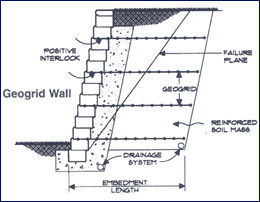 blocks stacked together and reinforced with geogrid. It is ideal